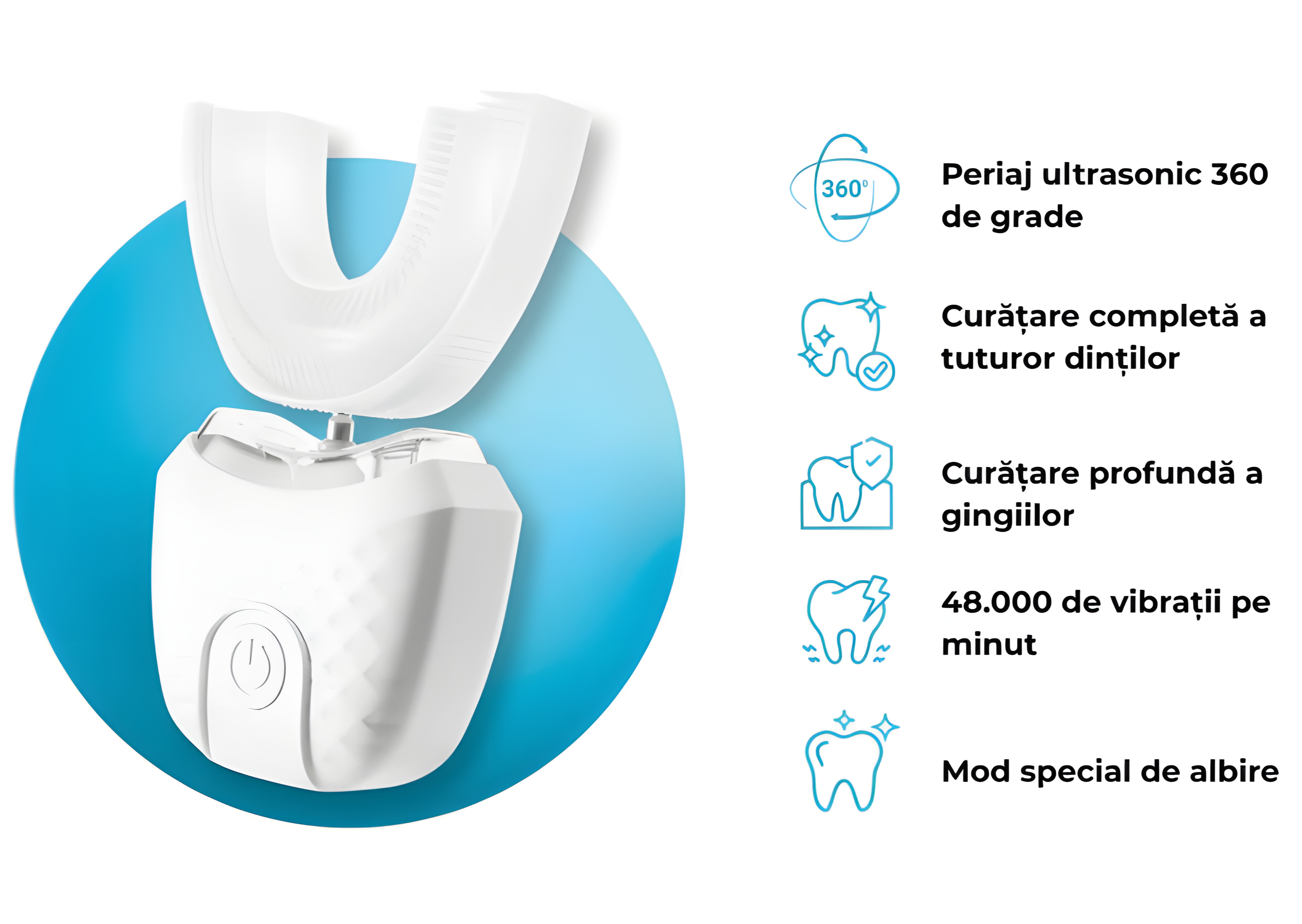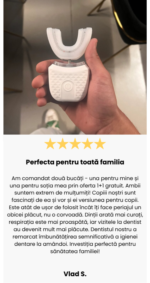Fiecare dinte experimentează 48.000 de vibrații pe minut, oferind o curățare profundă și o senzație pe care clienții noștri o descriu ca un masaj dentar... dar e mult mai mult decât atât!